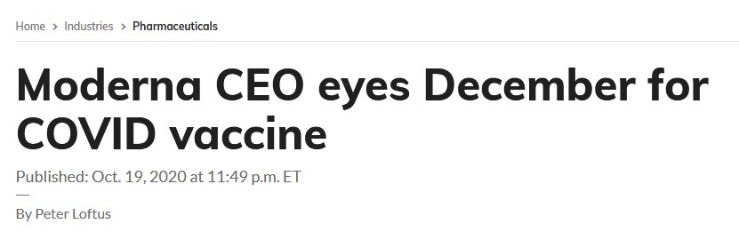 Moderna或将在12月批准其新冠疫苗的紧急使用授权