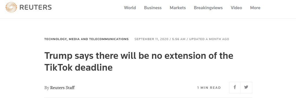 消息称,新成立的美国业务公司名为TikTok Global,或将在美国上市。