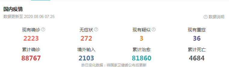 08月05日 香港新增85例新冠肺炎病例 累计确诊病例3755例;