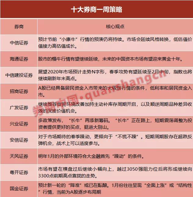1)诸多风险事件平稳过渡,全球主要权益类资产普涨,另国际商贸关系缓和;2)今年元旦、春节均集中在1月,再叠加信贷投放高峰、地方债发行等多重因素,市场需要更多的资金需求,预计新一轮的“降准”或已在酝酿;3)“北上”资金已连续29个交易日净流入A股,累计规模已创历史新高;4)以史为鉴,1月份往往呈现“全面上涨”或“结构性”行情,当前为A股逐步布局期;5)当前“新股发行、解禁、春节”等因素或扰动市场节奏,但不改变市场震荡上行的方向;6)投资建议:市场仍积极可为,把握两条投资主线。第一条配置主线是以外资为代表的中长线资金所布局的低估值蓝筹板块,主要集中在“大金融、地产以及其他消费、周期”等细分子板块的龙头公司;第二条配置主线是深挖新兴产业下的美股映射配置主线,如“苹果产业链、电动车产业链”等。