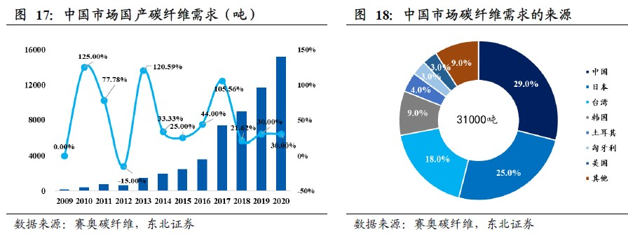 随着国内企业整体工艺能力和产品质量的提高,市场对国产碳纤维的认可度显著提升,国产碳纤维将在国内各个应用领域得到快速推广。