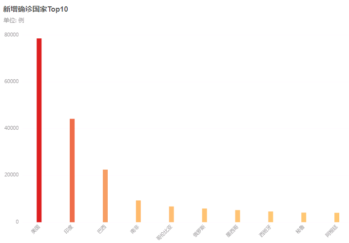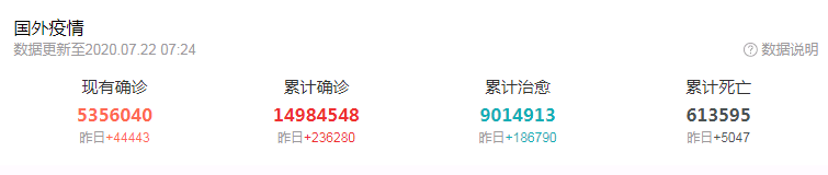 Worldometer实时数据,截至北京时间7月21日20时左右,全球新冠肺炎确诊病例达14882653例,死亡病例614002例。包括美国、巴西、俄罗斯等国在内的至少15个国家单日新增确诊病例数均超过千例,其中美国新增68344例,巴西新增20257例,印度新增37148例,俄罗斯新增5842例。