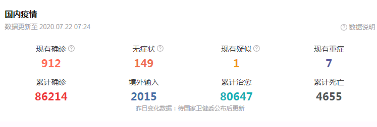 7月20日0―24时,31个省(自治区、直辖市)和新疆生产建设兵团报告新增确诊病例11例,其中境外输入病例3例(上海2例,四川1例),本土病例8例(新疆7例,兵团1例)。