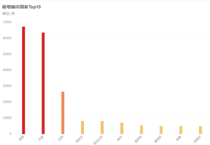 全球疫情持续蔓延,美国超过150名美国医学专家日前发表公开信,呼吁美国决策者分清轻重缓急,立即停止重启经济;巴西疫情严峻,里约海滩跨年盛会宣布取消;欧洲多国疫情再亮红灯,西班牙可能正在经历第二波疫情;非洲地区,南非贸易部长新冠病毒检测呈阳性,津巴布韦宣布继续加强防疫措施,几内亚比绍再次延长国家紧急状态30天;亚洲地区,印度连续11天单日新增病例保持在3万例以上,18个邦或地区的确诊病例突破万例;日本新冠确诊病例累计超3万例。