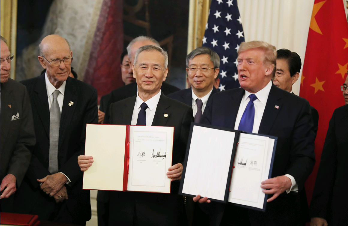 当地时间1月15日,经过中美两国经贸团队的共同努力,在平等和相互尊重的基础上,中美双方在美国首都华盛顿正式签署第一阶段经贸协议。协议文本包括序言、知识产权、技术转让、食品和农产品、金融服务、汇率和透明度、扩大贸易、双边评估和争端解决、最终条款九个章节。同时,双方达成一致,美方将履行分阶段取消对华产品加征关税的相关承诺,实现加征关税由升到降的转变。协议文本主要内容是什么?该如何解读?记者第一时间采访了权威专家。