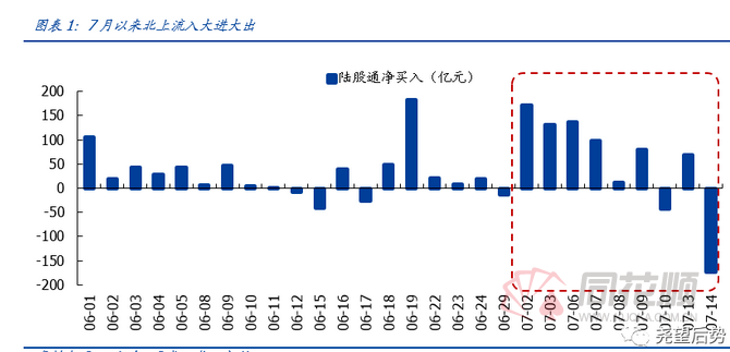 从七月来的数据发现,7月以来北上资金结构中,“假外资”占比出现了明显提升:其中,与交易型资金挂钩的外投行托管市值占比从6月底的16.7%提升至18.1%,而更多代表配置型资金的外银行托管市值占比则从81.7%降至80.8%。国盛证券推断,近期主导外资大进大出的主力更多是交易性资金,且不排除部分内资借道北上。而这也能在一定程度上解释近期北上资金配置行为的变化。